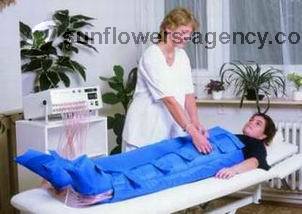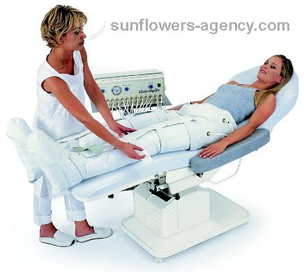 Spezielles Gerät für kosmetische Behandlung der Zellulitis, bestehend aus Zimt- oder Parafangowickel, Druckmassage im Lymphoven-Gerät sowie kosmetischer Hautpflege.
