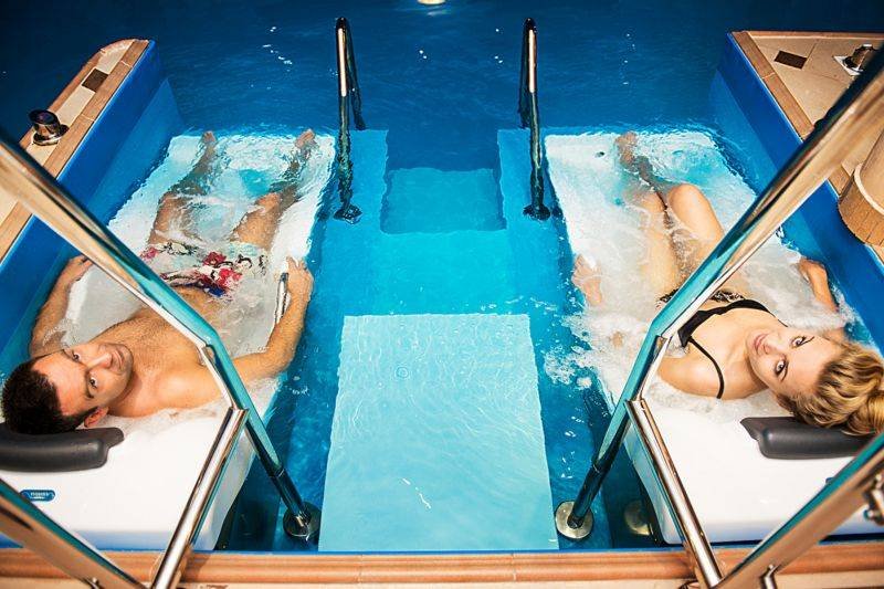 - Freier Eintritt ins Schwimmbad mit Wasserattraktionen, Geysir, Gegenstromanlage und Hydromassagesesseln