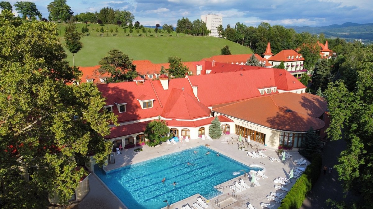Der Turzov Dom, das ehemalige Hotel Mier, gehört zu den Hauptunterkünften der Kúpele Bojnice und befindet sich im Zentrum des Kurbereichs mit Blick auf den umliegenden Park und das Schloss Bojnice.